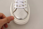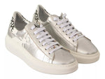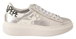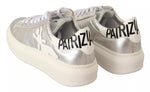 Patrizia Pepe Silver Full Grain Leather Lace Up Sneakers Shoes
