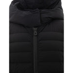 Peuterey Long Padded Jacket in black. Exposed zipper front fastening, two side pockets closed with flaps, non-removable hood. Long model, slouchy waist, logo tag on sleeve. Pattern: Viho. Composition: 82% Polyamide, 18% Elastane-Sku inside:24FEB07