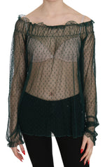 PINK MEMORIES Green Mesh See Through Long Sleeve Top Blouse