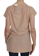 PINK MEMORIES Pink Cream Lace Short Sleeve Shirt Top Cotton Blouse