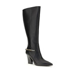 Pinko’s Viola high Boots are made of nylon and feature a modern, punchy design. The tapered toe slims the silhouette, while the asymmetric heel gives an original touch. On the side, a logo chain adds an iconic detail, complemented by the side zipper that ensures practicality. Ideal for a bold, contemporary style.