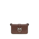 The Love One Shoulder Bag by Pinko in smooth calf leather features a rectangular shape, flap and magnetic button closure, and removable, interchangeable leather and chain straps. Details include a Love Birds buckle, logo plaque, and leather trims, while the interior with pocket and customized lining ensures practicality.