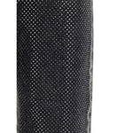 The Pinko five-pocket jeans in black stone-washed denim feature a loose-fit, contrast patches, and small faceted studs, with mid-rise waist, belt loops, and zip and button closure, combining workwear style with contemporary details.