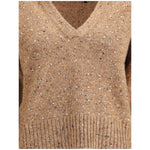 Pinko’s V-neck Sweater with rhinestones combines sporty style and precious details. Made of soft buttoned jacquard fabric, it features a polo-style collar, V-neck and long sleeves. The texture is embellished with bright rhinestones that add a shiny touch to the look. The hem and cuffs are finished with ribbing, while the tone-on-tone PINKO lettering logo label stands out on the front.