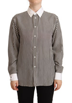 Polo Ralph Lauren Black White Striped Long Sleeves Collared Top