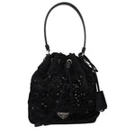 The product with MPN 1BE0672C4QWRMF0002 and code F85900 fabric in black is a handbags designed by Prada. It has features like front logo, beaded, side detail, removable details, adjustable shoulder, removable shoulder.