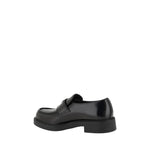Prada’s Leather Loafers revisit a classic with a bold, contemporary attitude. Featuring a slightly elongated round toe and a textured platform sole, they are distinguished by the iconic enameled triangular logo plaque applied to the front tray. The logo-embossed insole completes the design with a signature touch. Ideal for those looking for luxury loafers with a modern and distinctive character.