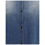 Prada’s oversized denim Shirt Jacket combines denim appeal with a modern, relaxed fit. Featuring a classic collar and front snap closure, it is distinguished by the triangular plaque on the front, an iconic detail that elegantly signs the garment. Perfect for a casual yet sophisticated style.