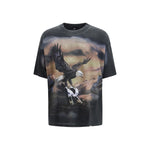 The Chrome Flight T-shirt by Represent, made from high-quality cotton, combines comfort and urban style with a distinctive design. The short sleeves and ribbed edges finished with a distressed effect create a worn and authentic look. The raglan shoulders ensure greater freedom of movement, while the contrasting logo prints on the front and back add character and a touch of originality to the garment. Perfect for those looking for a casual look with personality.