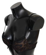Roberto Cavalli Black Leopard Nylon Push Up Bra Underwear