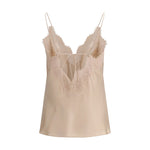 The silk Camisole by Róhe embodies understated and refined elegance. Crafted from fluid silk, it features delicate lace detailing along the neckline and back, adding a feminine touch to the design. The V-neck enhances the silhouette, while the thin adjustable straps extend gracefully down the back, ensuring a customizable fit and a clean, elegant finish.