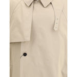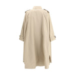 Saint Laurent’s cotton twill Trench Coat reinterprets the classic silhouette with textured details and military elegance. Made of certified cotton, it features a cape design with a pointed collar and adjustable chin strap, windproof flap, padded shoulders and straps on the cuffs. The front button and hook-and-eye closure at the collar, along with the two profiled pockets, complete a refined and functional garment.