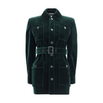Saint Laurent’s velvet saharan Jacket is a garment of decisive elegance and timeless style. Made of soft velvet, it features a front button closure, pointed collar and double-button cuffs. The four patch pockets, two on the chest and two on the front with flap and button, along with the two inside welt pockets, offer practicality and functionality. Completing the design is the adjustable and removable belt, which defines the silhouette with a refined and versatile touch.