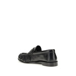 Le Loafer Loafers by Saint Laurent combine classic elegance and iconic details. Crafted from supple leather, they feature a hand-stitched moc toe and the signature CASSANDRE embellishment in gold-tone metal. The leather sole completes the sophisticated design, perfect for a timeless style.