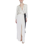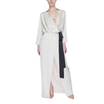 Experience timeless elegance with the Sandro Ferrone women’s long dress, model S23XBDBELAMY. Crafted from 100% polyester, this dress features a fluid and sophisticated silhouette designed to flatter every figure. The refined wrap neckline and long sleeves offer a touch of class, while the contrasting side belt adds a modern and feminine accent. A front slit provides movement and allure, making this dress perfect for special occasions, ceremonies, or evening events. The high-quality material ensures comfort and a flawless fit, for a look that stands out in every detail.