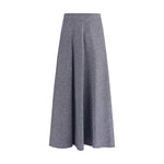 Sara Roka’s flared midi Skirt is an item that combines elegance and practicality with a contemporary twist. Made of denim-effect fabric, it features a flared silhouette that enhances the figure and gives movement with every step. The side zipper closure is discreet and functional, while the two welt pockets on the front add a refined sartorial detail, perfect for those who love a style with attention to detail.