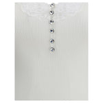 Self-Portrait’s lace Top is an elegant and feminine piece featuring thin straps and a refined ribbed design. The lace detail adds delicacy, while the rhinestone buttons on the front add a touch of light and sophistication, making it perfect for romantic and contemporary looks.