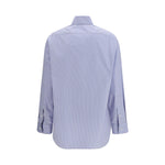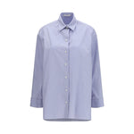 The Sisilia Shirt by The Row is an elegant, minimalist piece made from organic cotton poplin with a subtle stripe pattern. The classic design offers a comfortable fit, with a subtle back yoke and visible front placket finished with mother-of-pearl buttons, adding a refined detail. Perfect for sophisticated and timeless looks, it combines quality materials, comfort, and the brand’s signature understated elegance.