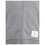 Thom Browne’s Zip Sweatshirt combines comfort with signature style. Featuring a front zipper closure, it has ribbed cuffs and hem for a defined fit. The design is enhanced by the logo patch on the front and the iconic contrasting horizontal bands on the left sleeve, the brand’s signature design.