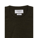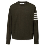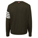 Maglione girocollo Thom Browne, in verde scuro con dettaglio a 4 barre su manica.