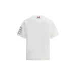 The Thom Browne Cotton T-Shirt is an essential piece with a clean and distinctive design. Crafted from soft cotton, it features a ribbed crew neck and the iconic horizontal stripes on the left sleeve. The monogram patch on the front adds a touch of recognition.