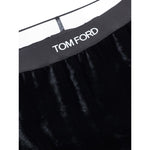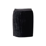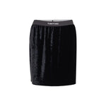 Tom Ford Black Velvet Mini Skirt. With elasticated waistband with contrasting jacquard logo, internal lining. Composition: 82% Viscose, 18% Silk. Lining: 100% Silk. Internal SKU: 25FEB95