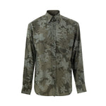 Tom Ford Green Floral Print Shirt. Front button fastening, regular collar, side pocket, slightly rounded at the bottom, regular fit. Allover green floral print.
