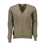 "v" neck cardigan, 6 buttons, embroidery, logo