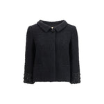 The tweed virgin wool Jacket by Valentino Garavani reflects the brand’s refined tailoring through a structured, character-rich construction. The classic collar sets a polished tone, while the button closure is elevated by a jewel-like first button that adds a luminous touch. The long sleeves feature delicate jewel detailing at the cuffs, enhancing the piece with subtle refinement. A design that blends contemporary sophistication with artisanal precision.