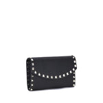Valentino Garavani grained leather Wallet with removable chain shoulder strap for dual modes of use. Features front closure with magnetic flap and iconic Rockstud studs applied on the perimeter for a bold and elegant design. Inside, a single compartment with card slots to better organize your essentials.