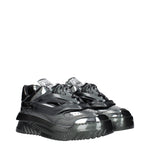 The product with MPN 10045241A022591E550 and code F86148 leather in silver is a sneakers designed by Versace. It has features like front logo, back logo, metallic effect.