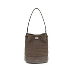 The Mondà Bucket Bag by Zanellato strikes the perfect balance between tradition and modernity. Made from suede with a woven decoration, it recalls the iconic basket used by rice weeders, adding a typically Italian retro touch. The drawstring closure on the front is a distinctive detail that enhances the craftsmanship of the design. Featuring a handle and an adjustable and removable shoulder strap, this bag combines practicality and timeless style.