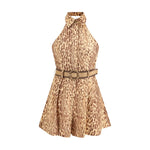 Zimmerman’s Leopard Short Dress combines a bold pattern with refined details. Featuring a concealed back zipper closure and partial front button closure, the design offers practicality and elegance. Side-stitched pockets add discreet functionality, while the lightweight, natural linen fabric is complemented by a detachable raffia belt that defines the waist with a summery, sophisticated touch.